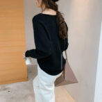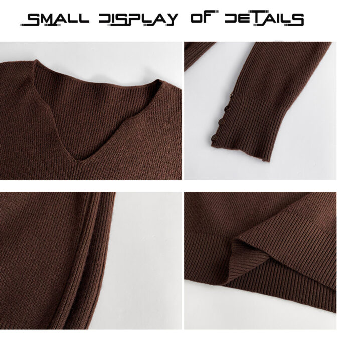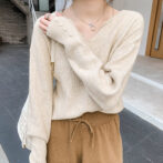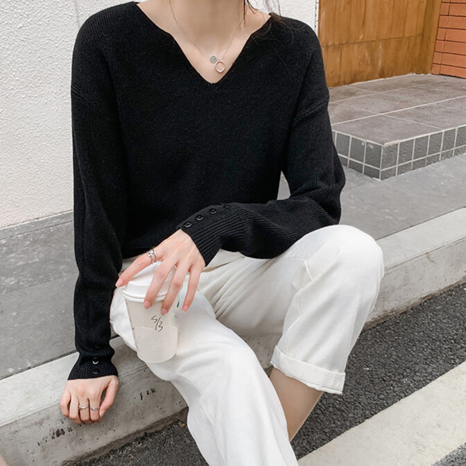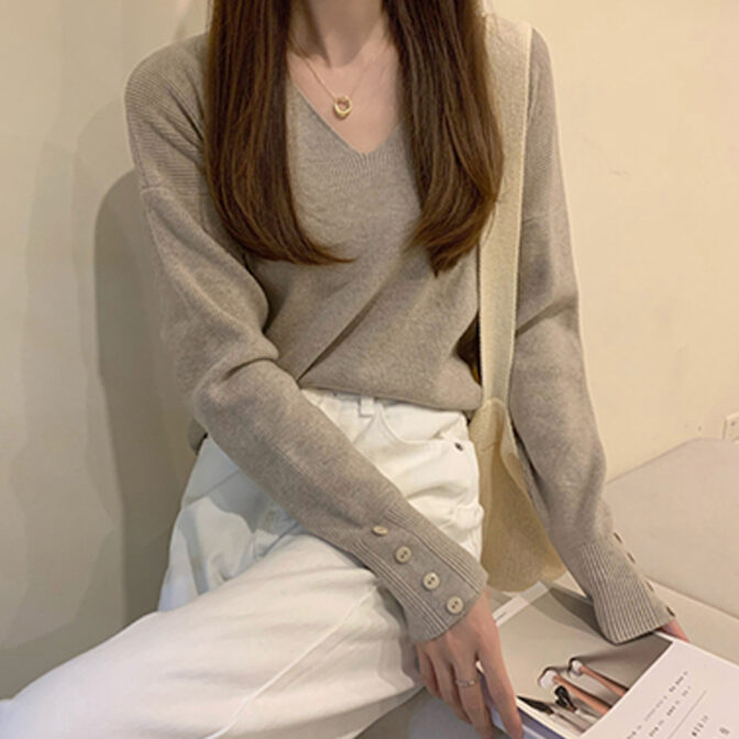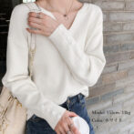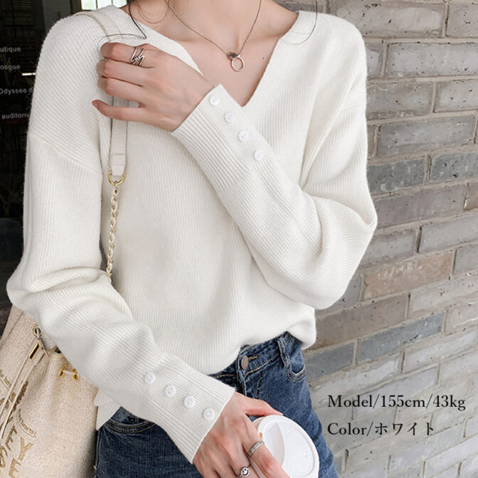 ネックラインスリットと袖にボタンをあしらった、大人っぽいのニットトップス。