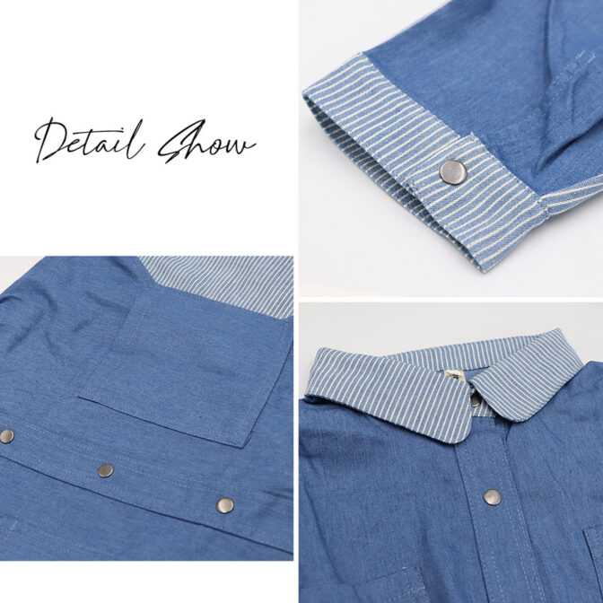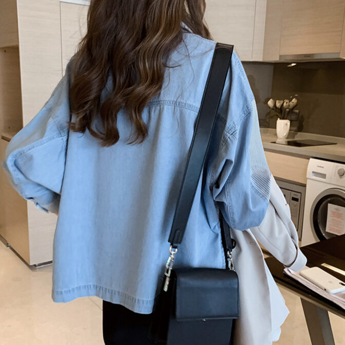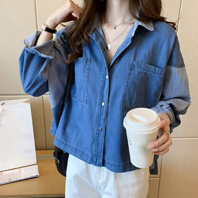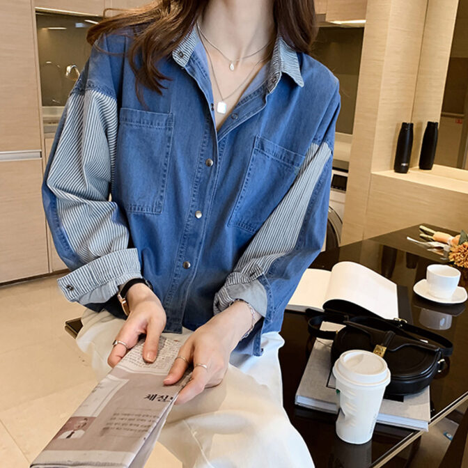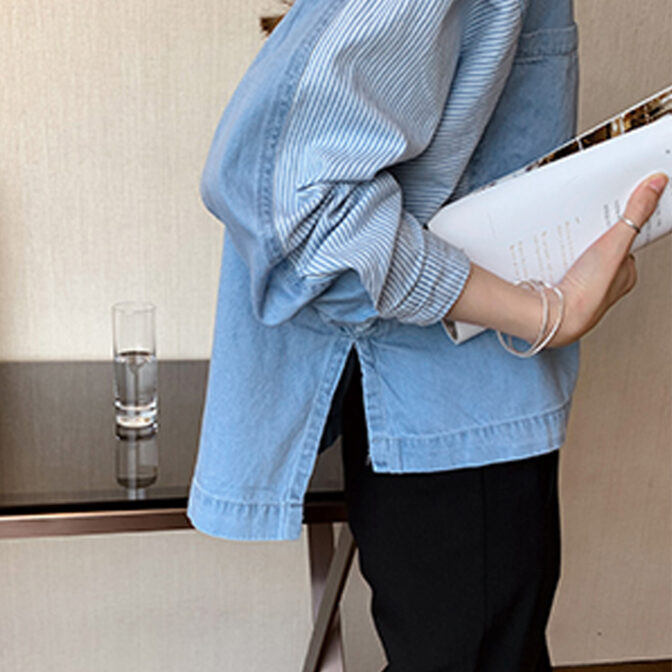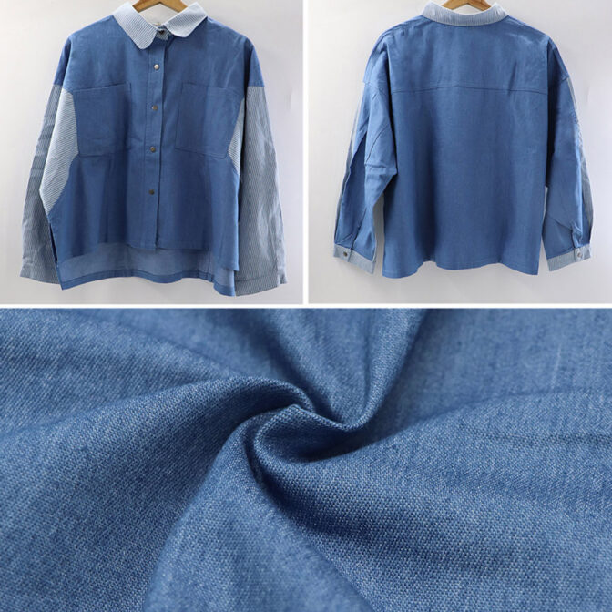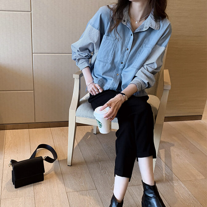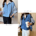 カジュアルになるすぎないレディースデニム風シャツブラウス。