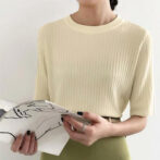 デイリーに楽しめるリブニットトップス。