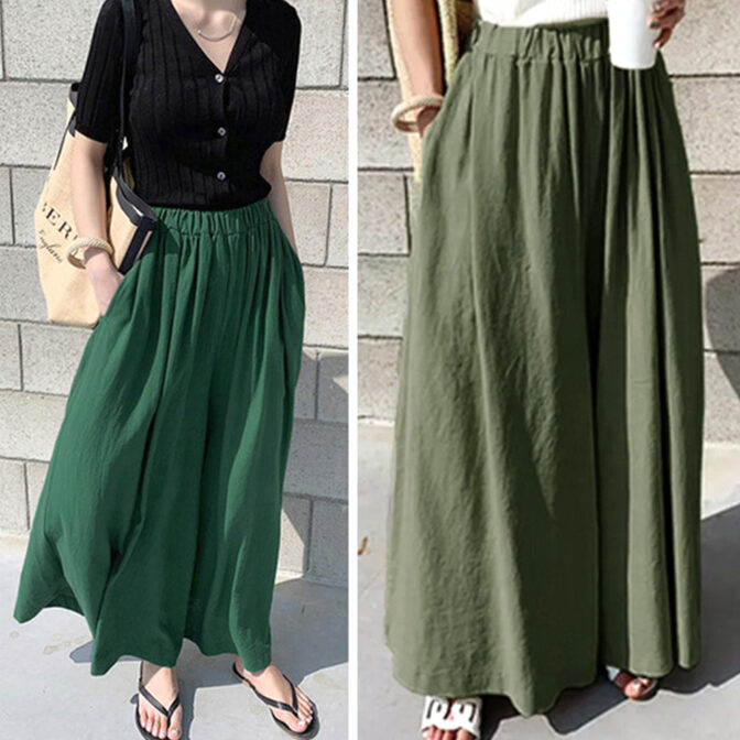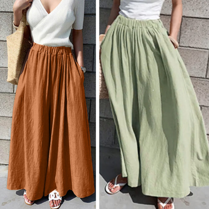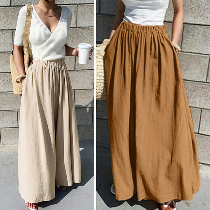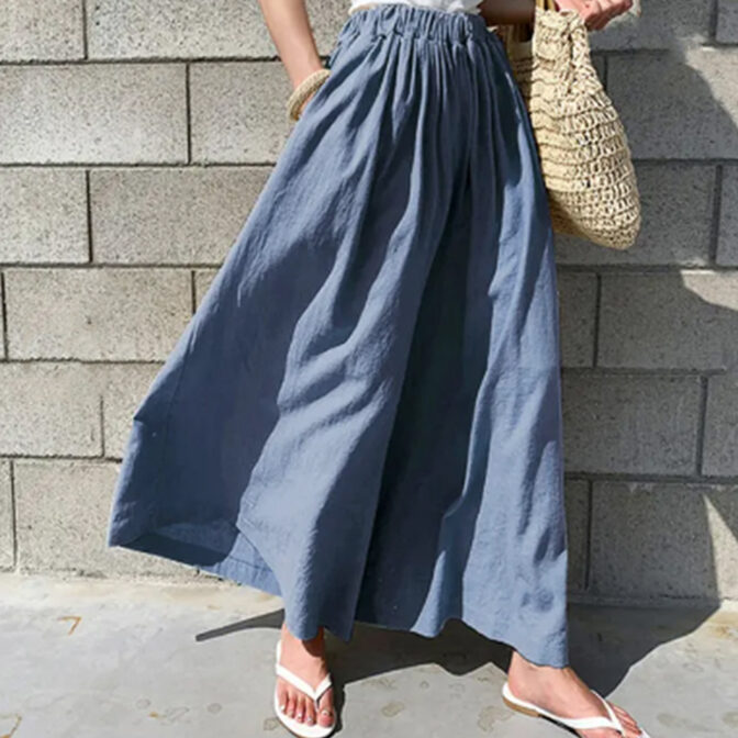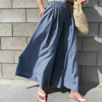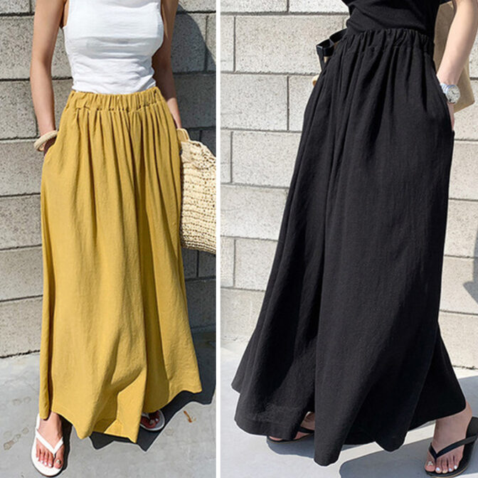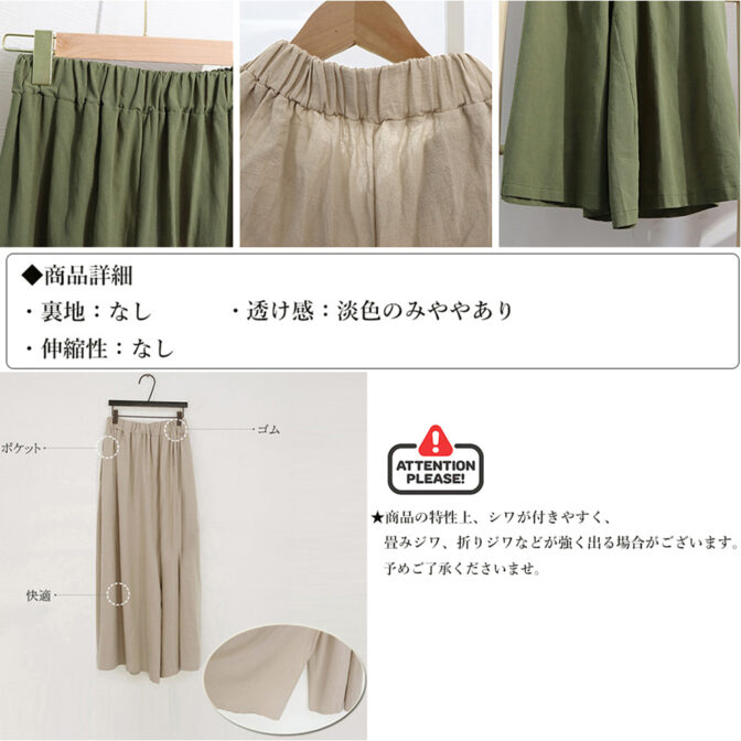 サラッと快適な肌ざわりが心地よい綿麻風ワイドパンツ。
