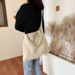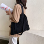 ナチュラルな風合いとシーズンライクな生地感にバスケット編み模様、シンプルながらもオシャレなニット素材の肩掛けカバン。