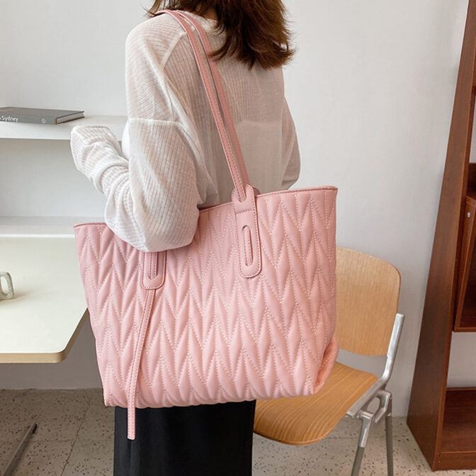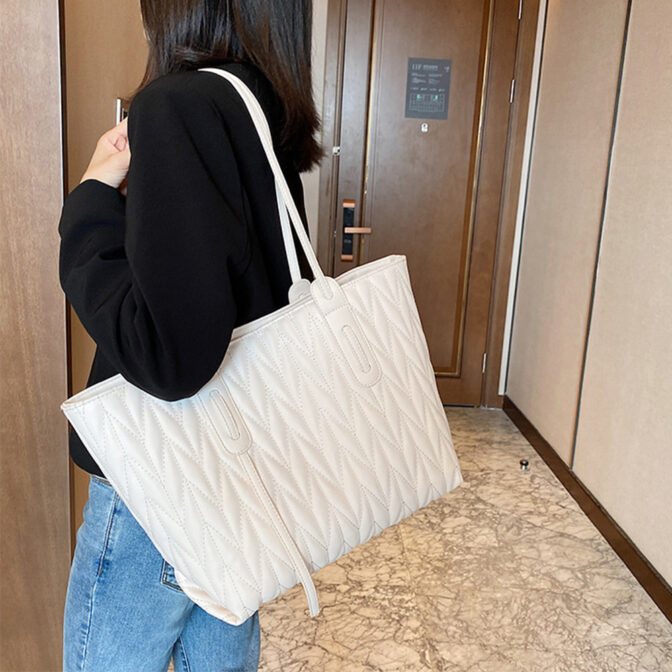 A4サイズの書類なども収容可能なPUレザートートバッグ。