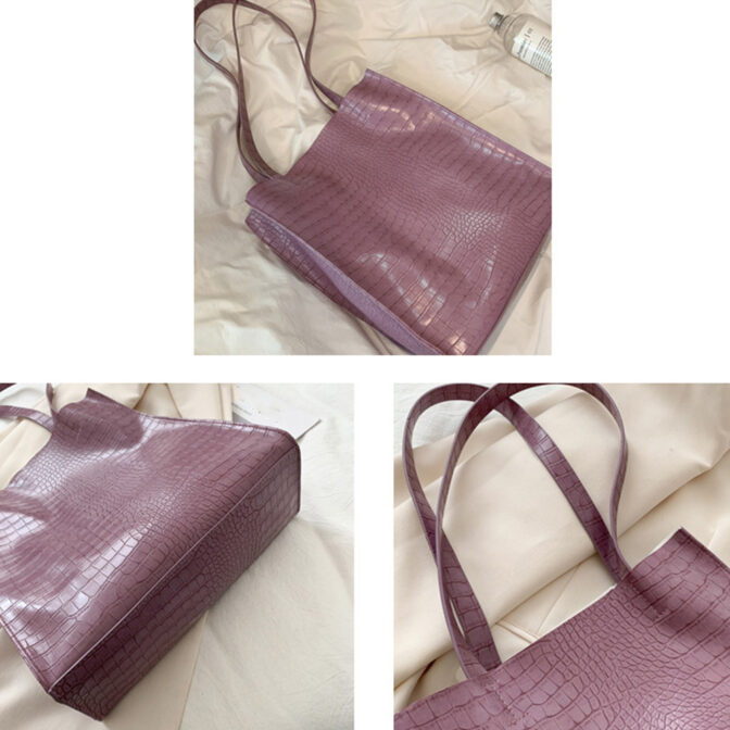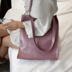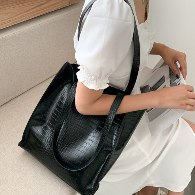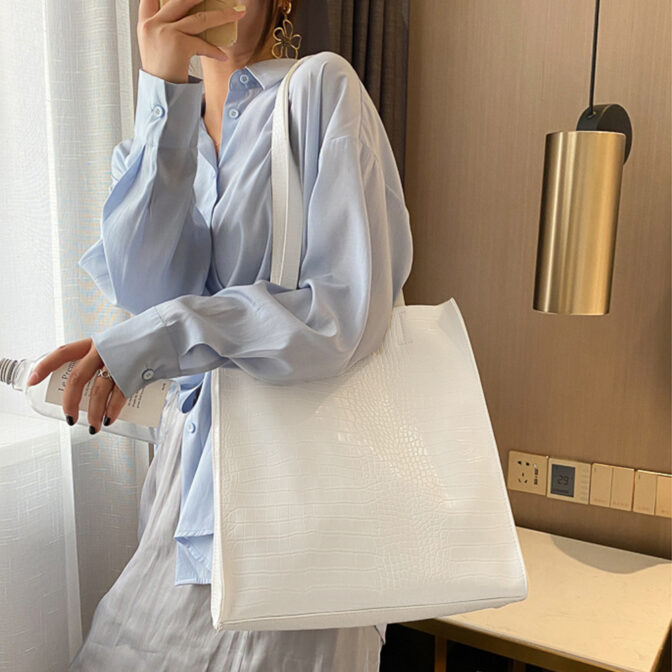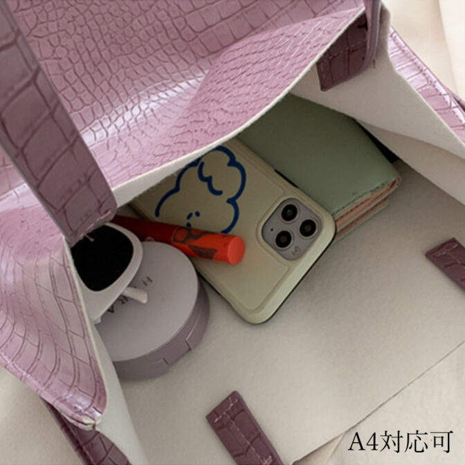 クロコダイルの型押しは表面感と大人らしさをプラストートバッグ。