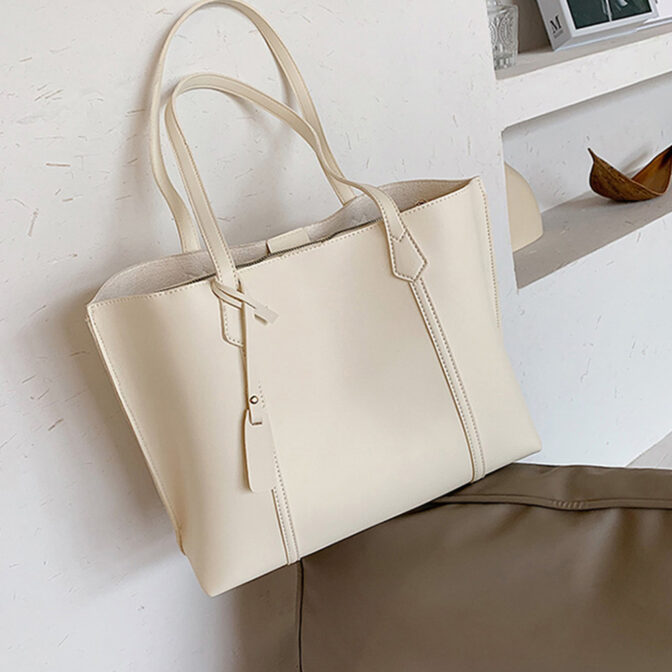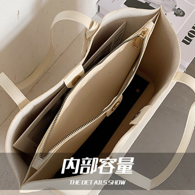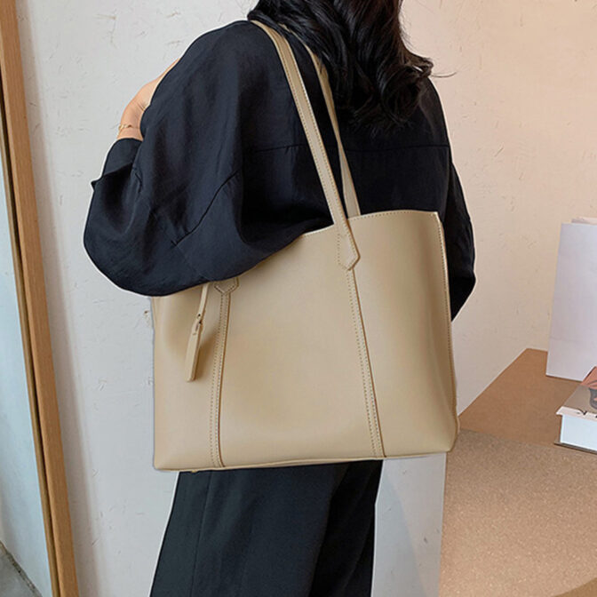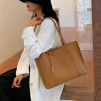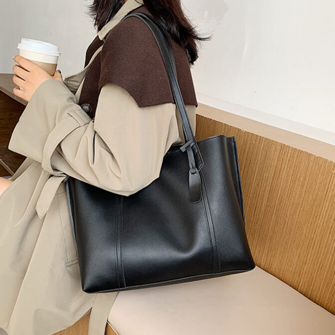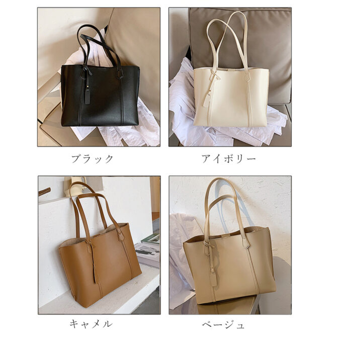 PUレザーで仕上げた上品な大容量のトートバッグ。