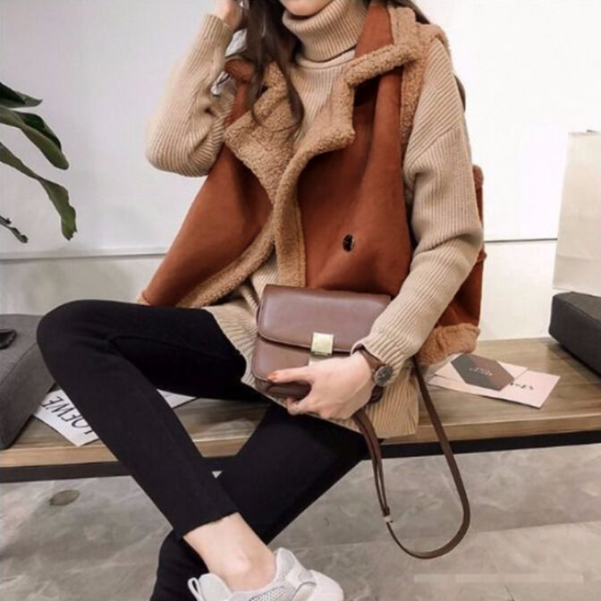 もこもこ感が可愛さ満点のフェイクムートンベスト。