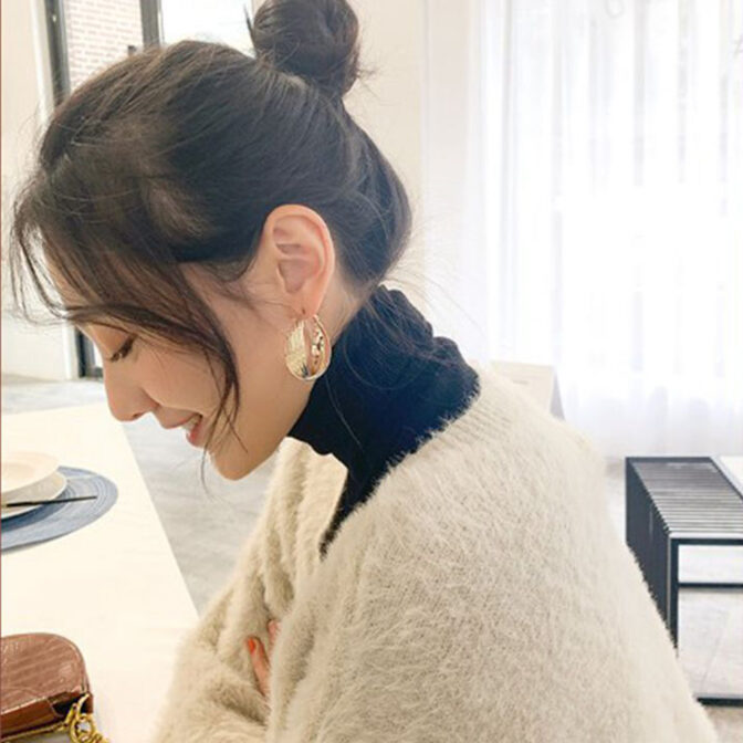 いつものコーデに取りいれることで華やかに仕上がる大きめのピアス。