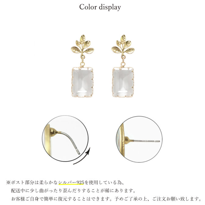※ポスト部分は柔らかなシルバー925を使用している為、配送中に少し曲がったり歪んだりすることが稀にあります。お客様ご自身で簡単に復元することはできます。予めご了承の上、ご注文お願い致します。
