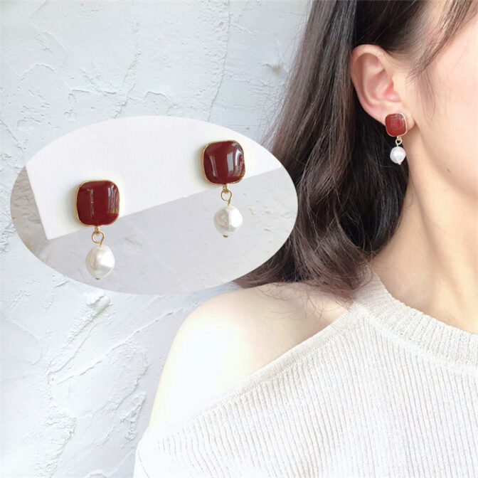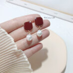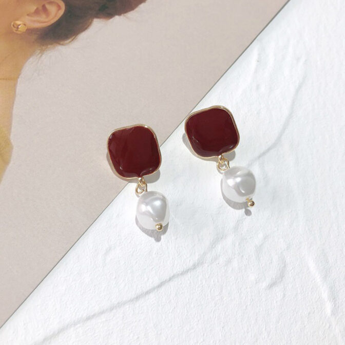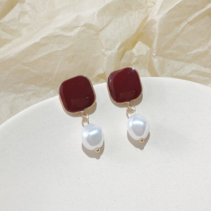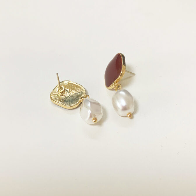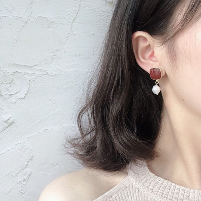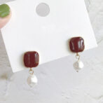 照りのあるフェイクパールとワインレッドの輝きがコーディネートをより華やかにしてくれます。