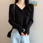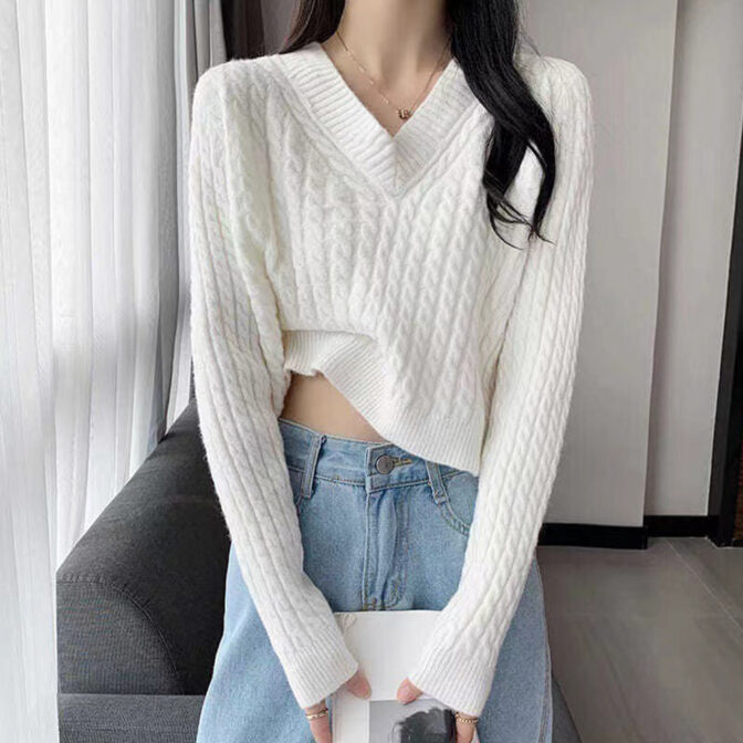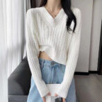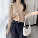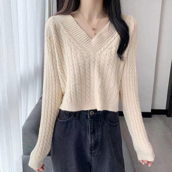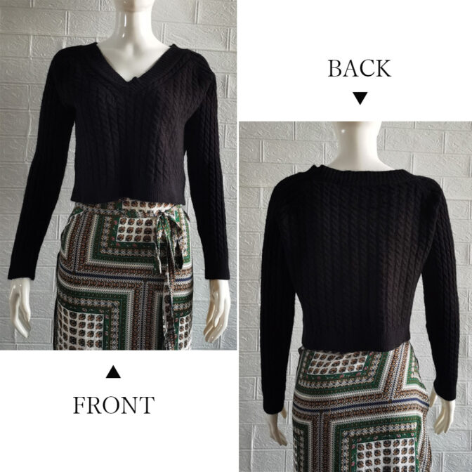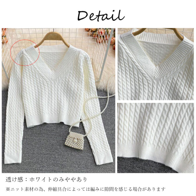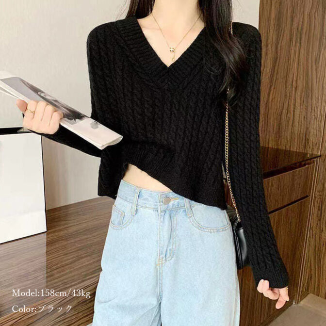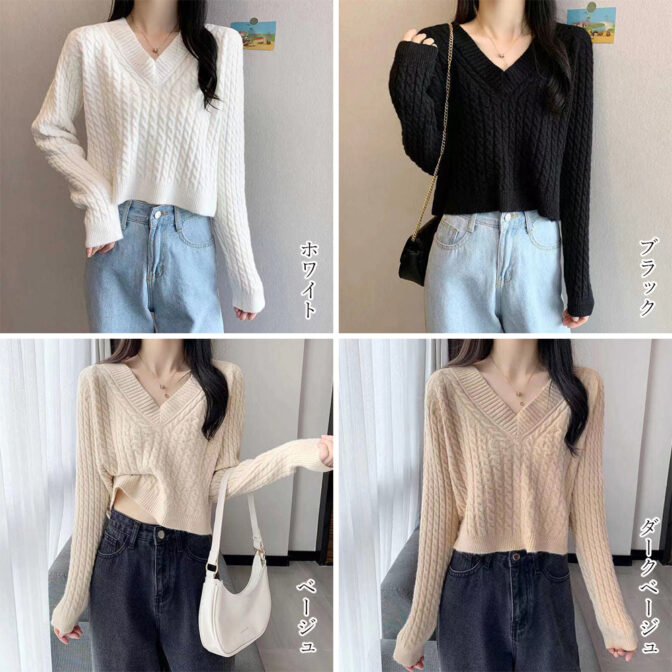 Vネックケーブル ショートニット 全4色