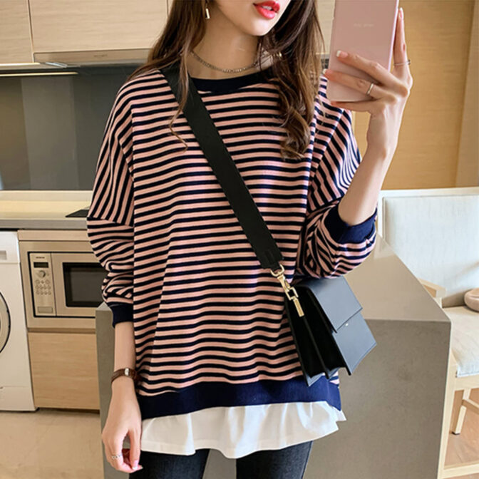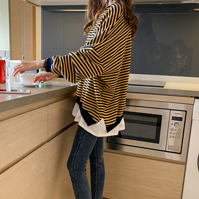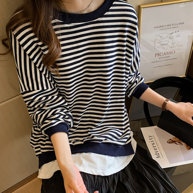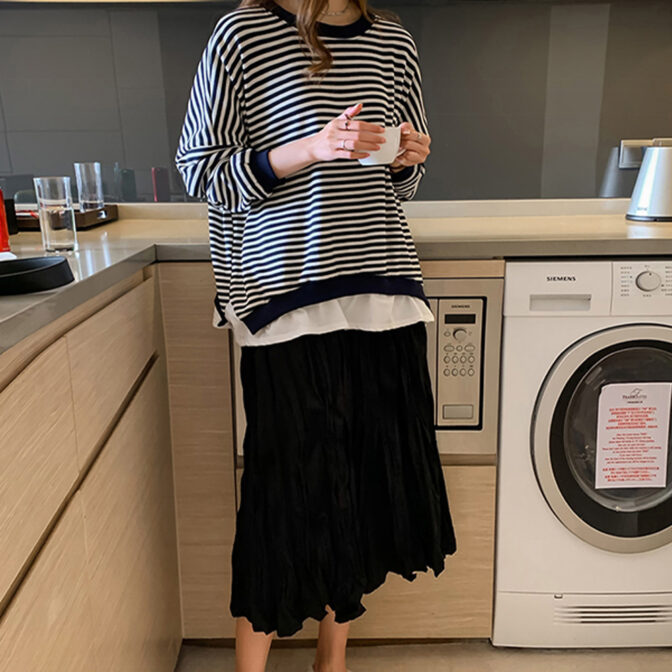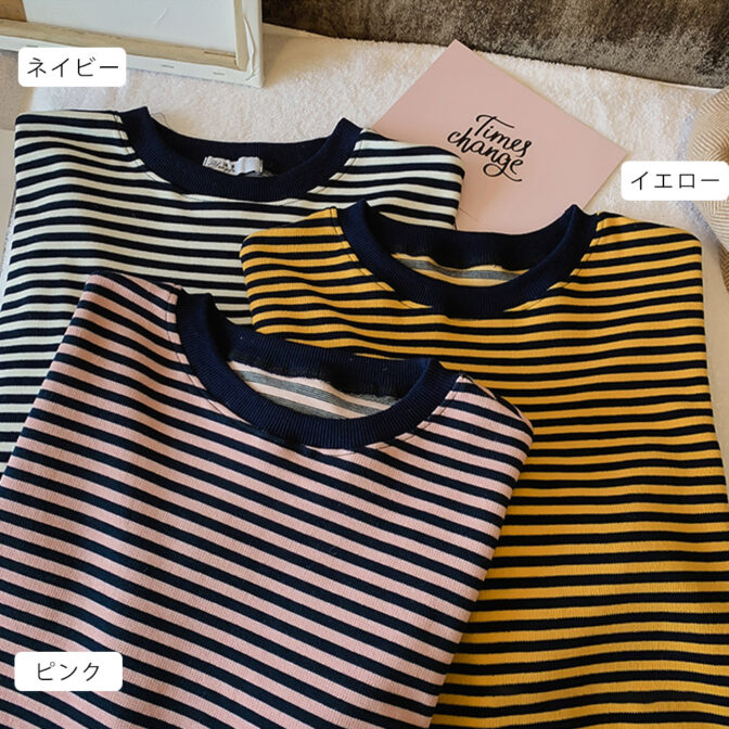 コーディネートに投入すると一気に華やぐレイヤード風ボーダーニットトップス。