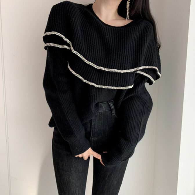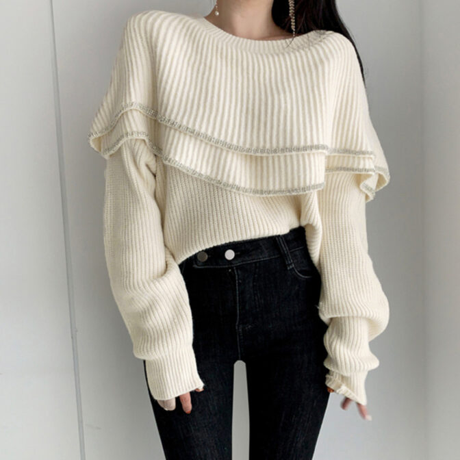 ボリュームたっぷりでコーディネートの主役になるフリルニットセーター。