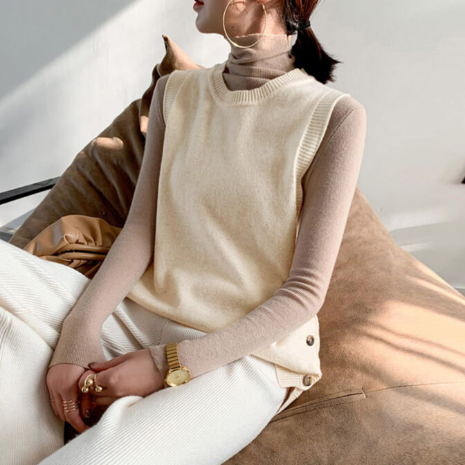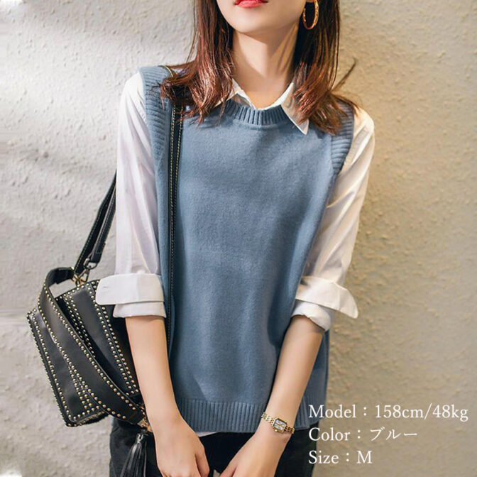 コーディネートにこなれ感をプラスしてくれるラウンドネックニットベスト。