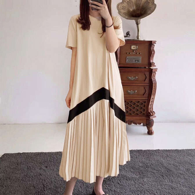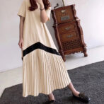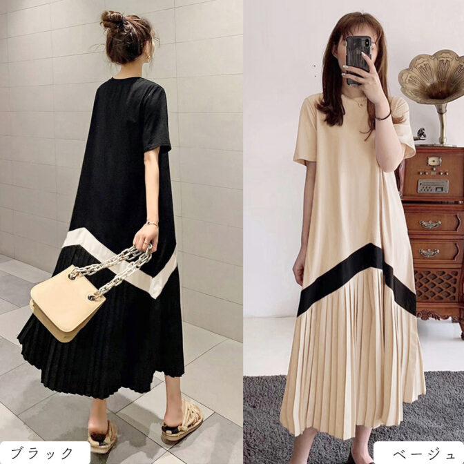 コーデに迷ったときにさっと着られて便利なプリーツ切り替えワンピースです。