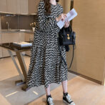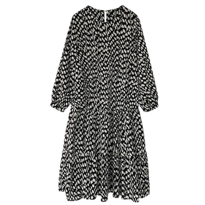 女性ならではのドット柄でフェミニンに、首の露出を抑え清楚に。絶妙なバランス1枚で素敵な着こなしに仕上げてくれます。