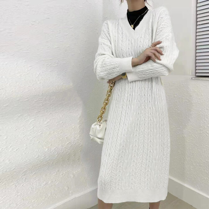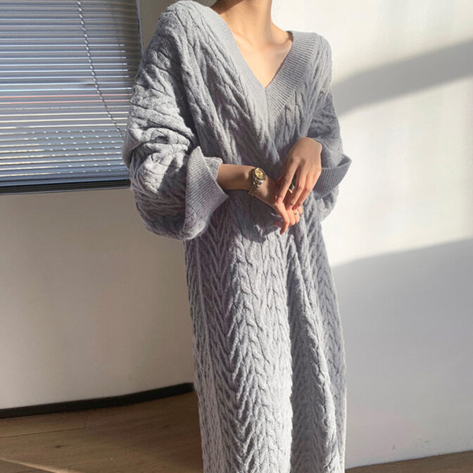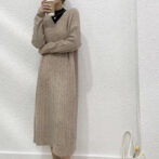 デコルテをキレイに見せてくれるVネックと、程よくゆるいサイズ感が、抜け感のある雰囲気を演出します。