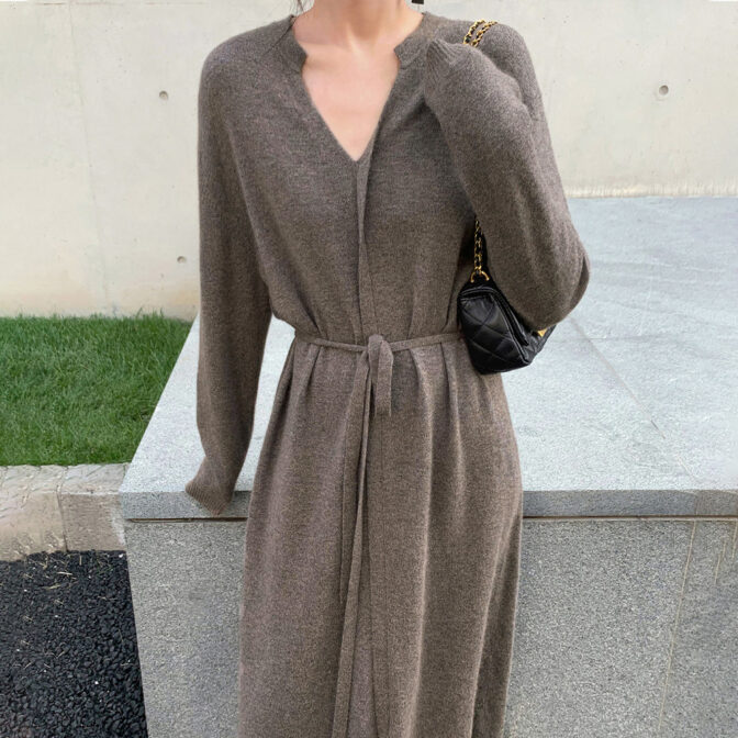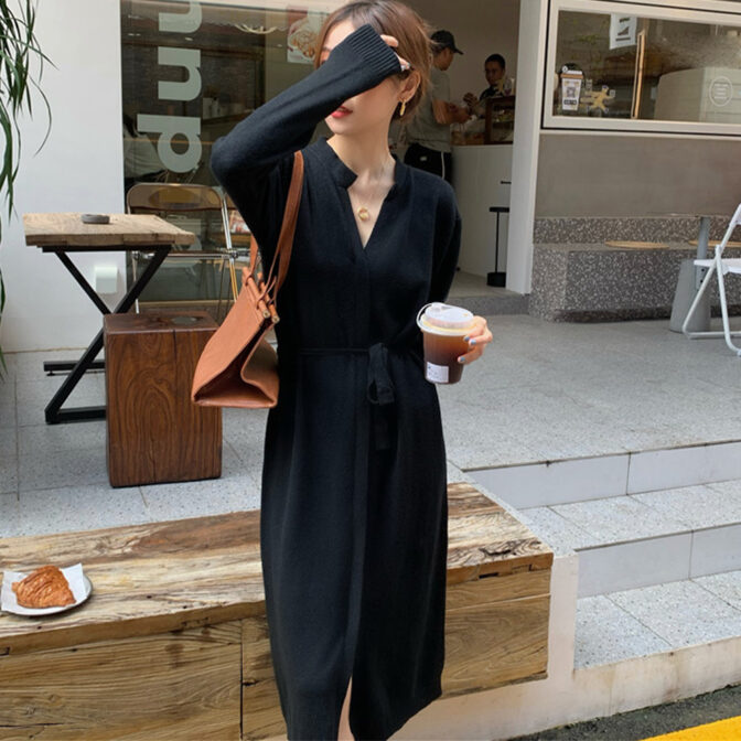 一枚だけでお洒落なこなれ感が出るニットワンピース。