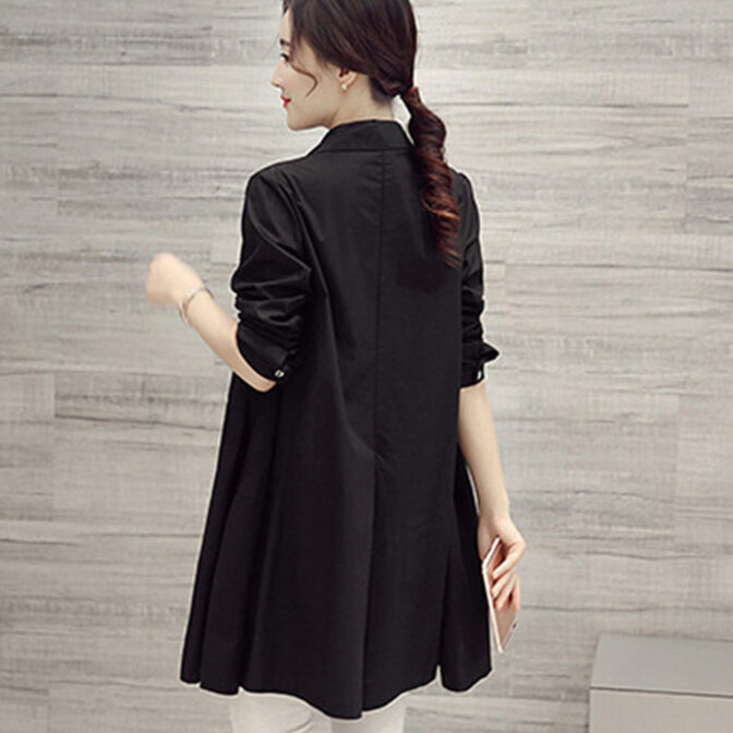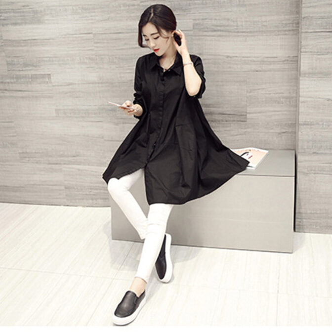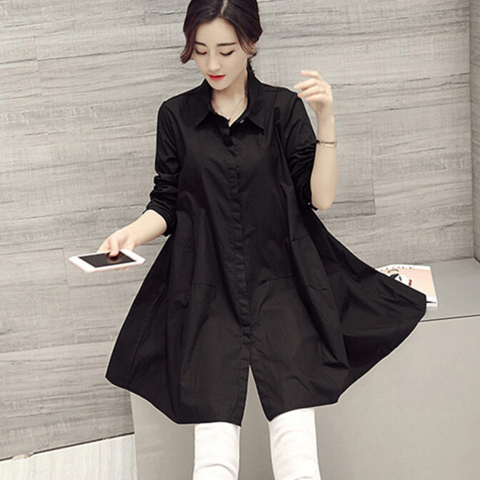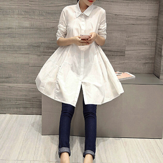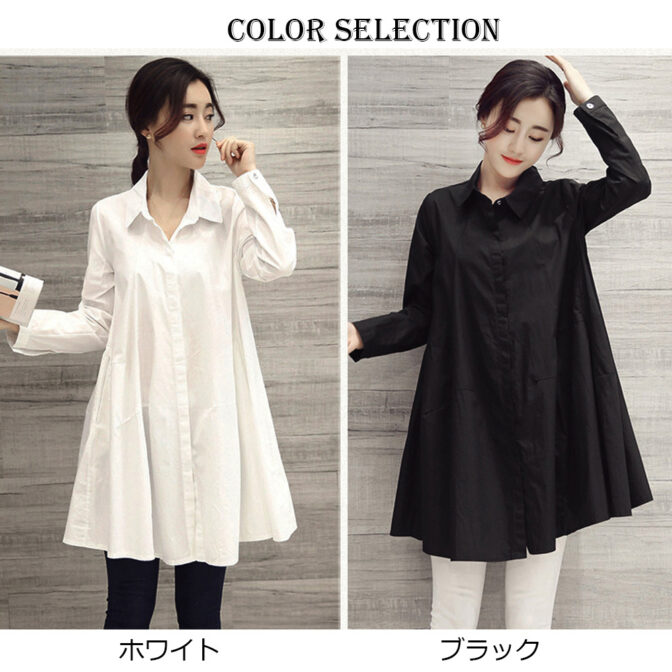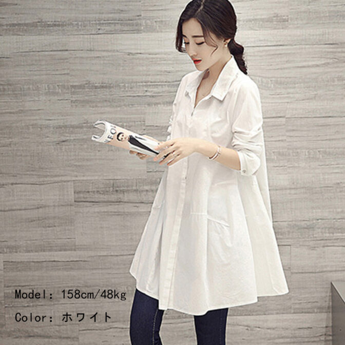 大人カジュアルを演出してくれるシンプルロング丈シャツ。