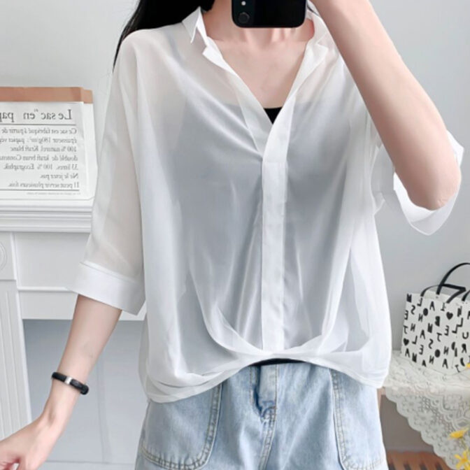 サラッと涼しげなブラウスとインナーキャミソールのセットアイテム。