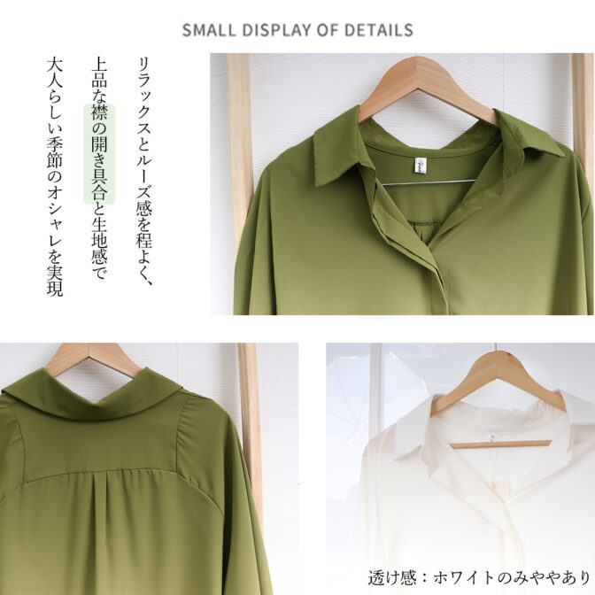 リラックスとルーズ感を程よく、上品な襟の開き具合と生地感で大人らしい季節のオシャレを実現してくれます。