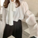 首元のリボンが可愛いふんわりシャツ。