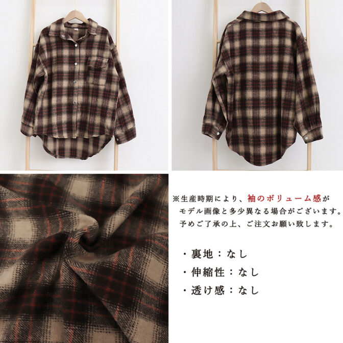 起毛感のある程良い厚さのチェック柄シャツ。