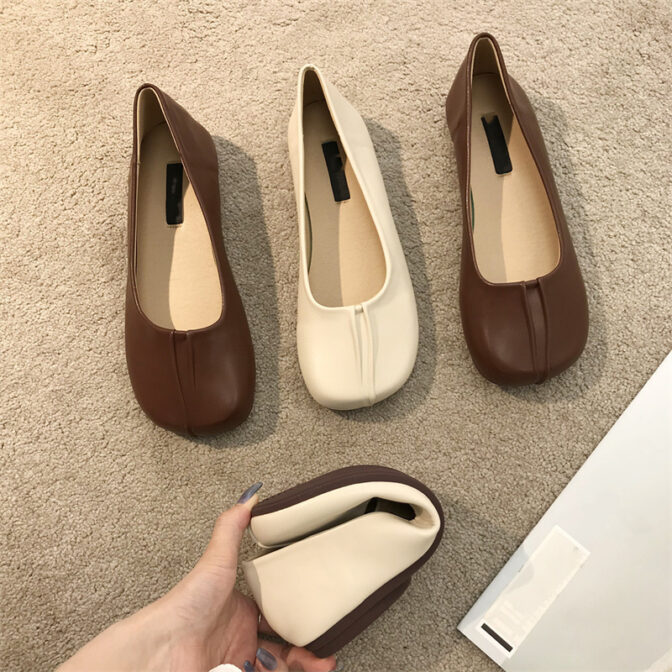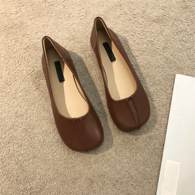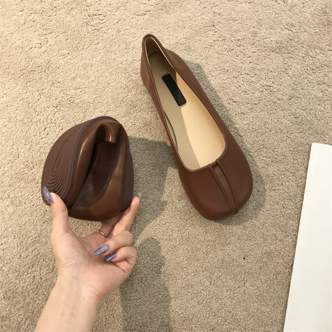 素材がやわらかく歩いても痛くなりにくいローヒールパンプス。