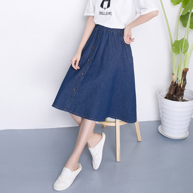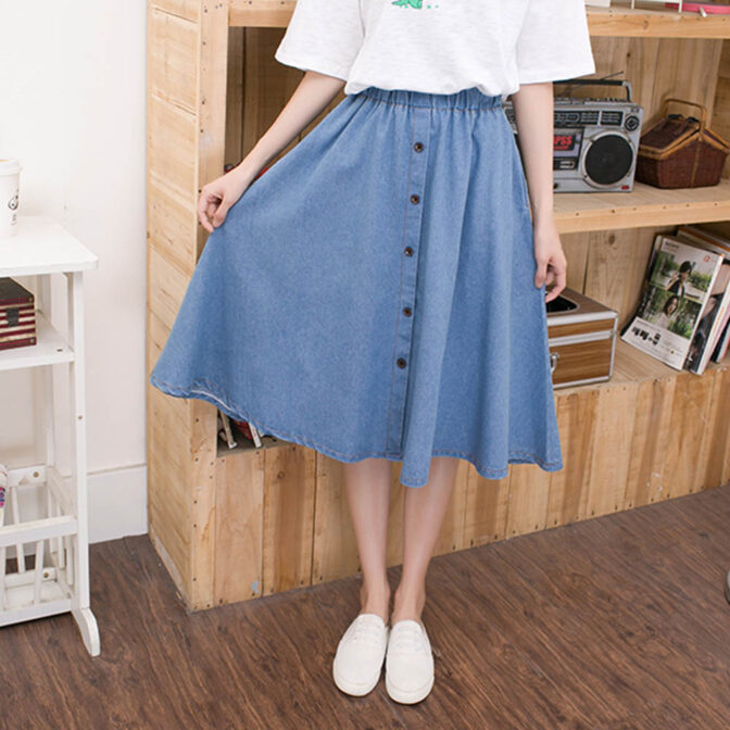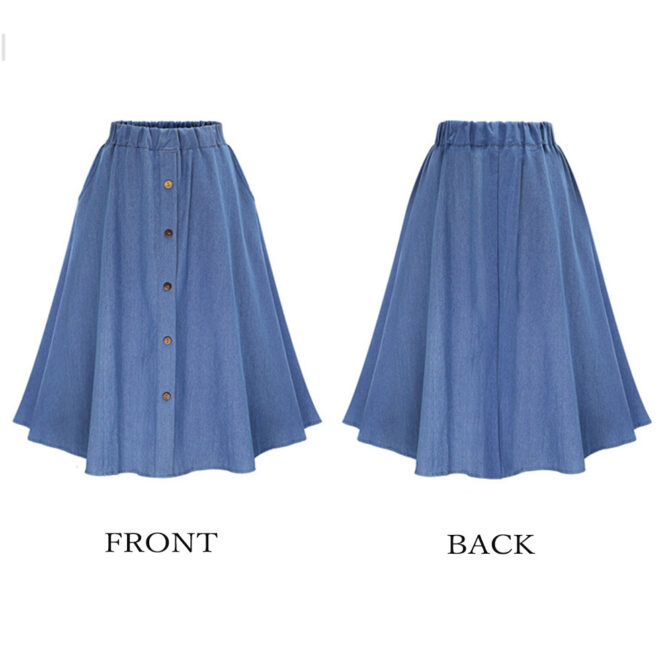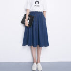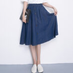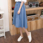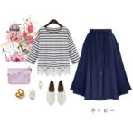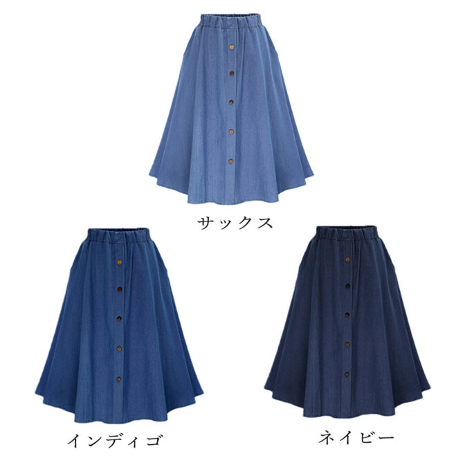 広がりすぎない、ほどよいフレア感が大人女子にぴったりのデニム風スカート。