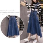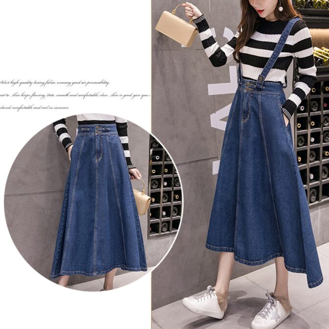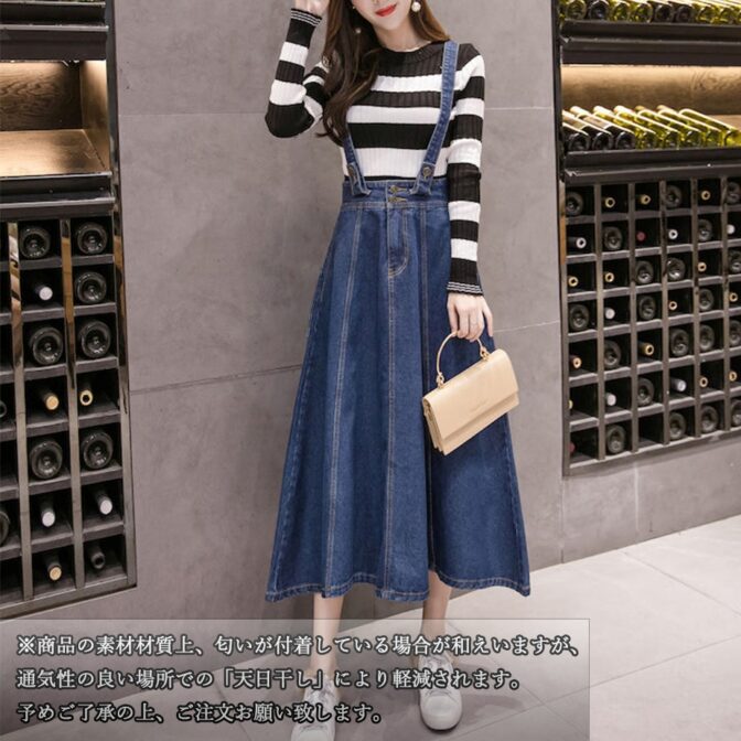 サスペンダーを外せばシンプルで着回し力抜群のデニムスカート。