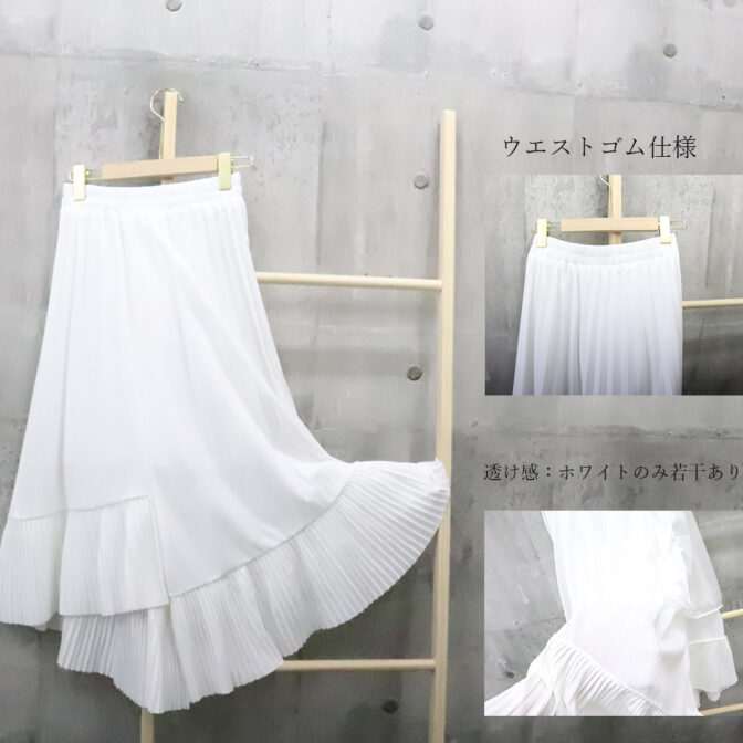 スカート丈(アシンメトリー仕様):最短約70cm/最長約85cm ウエスト(ゴム仕様):約58-94cm ヒップ:約116-126cm