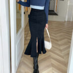 スタイルアップさせてくれるマーメイドシルエットに、後ろ姿まで可愛くしてくれるのがポイント。