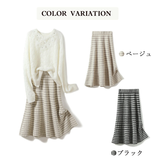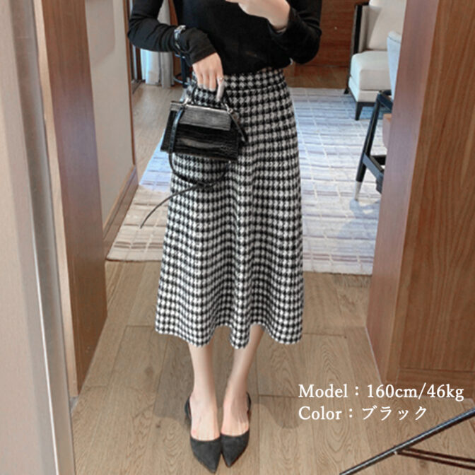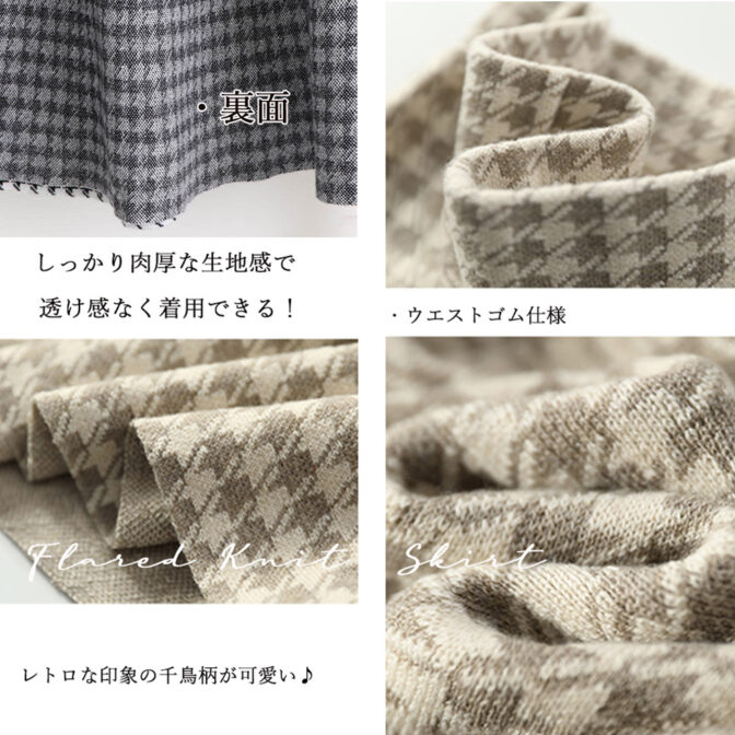 千鳥格子柄フレアニットスカート 全2色