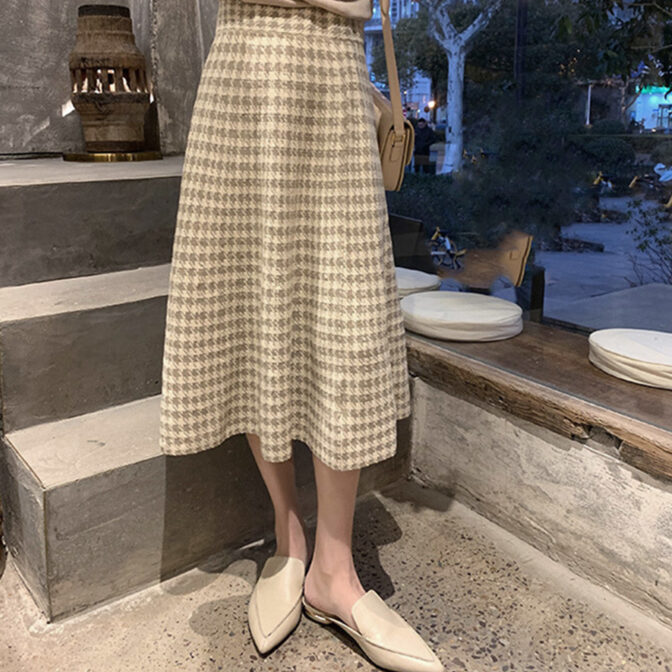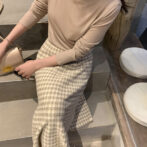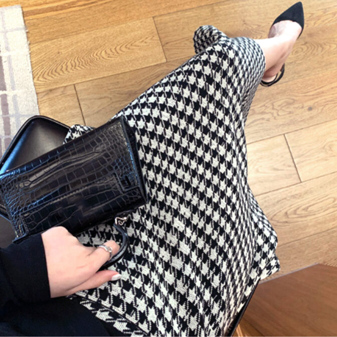 レトロな印象の千鳥柄が可愛いニットスカート。