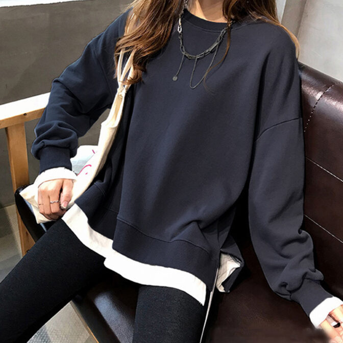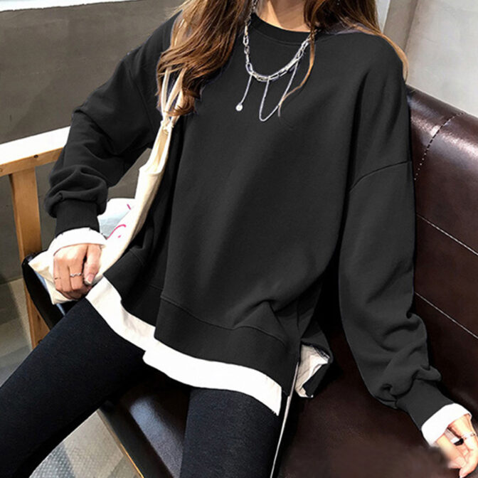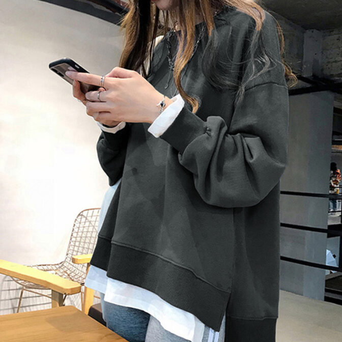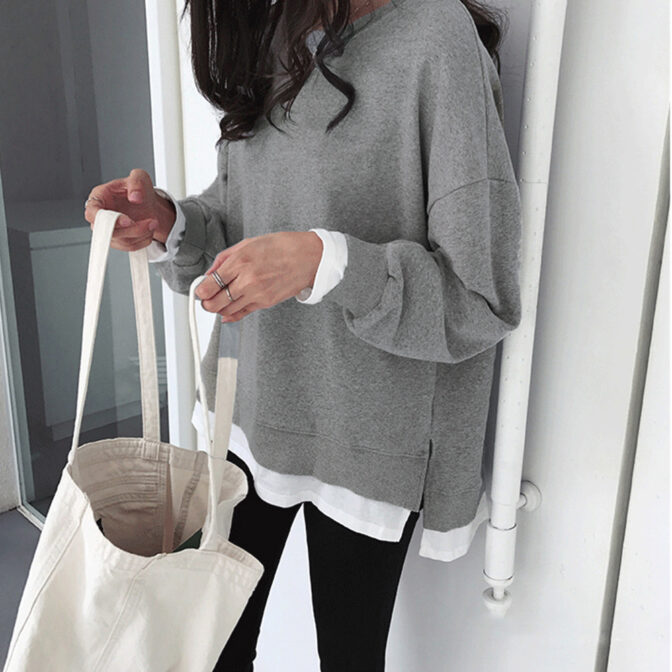 重ね着風のお洒落なラウンドネックトレーナーの登場です。