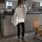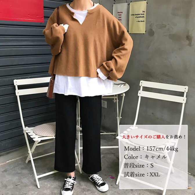 1枚でレイヤードスタイルになるストリートスタイルスウェット。